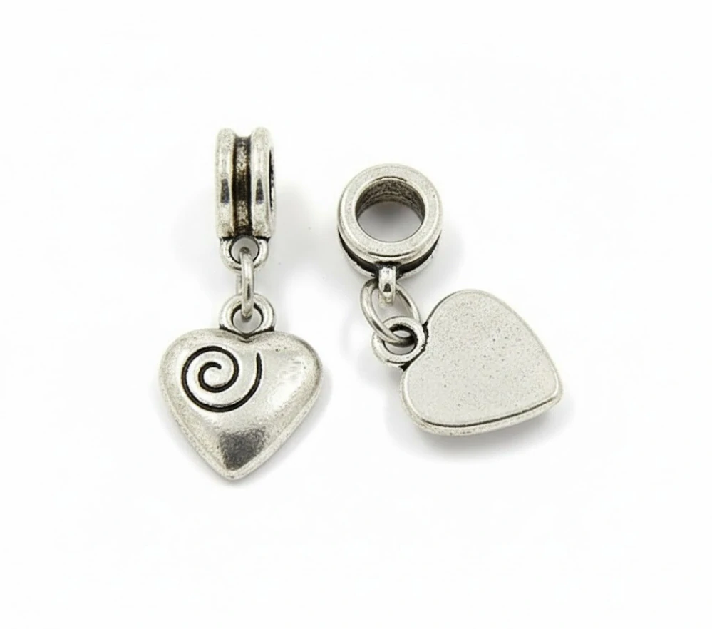 Ozdobný korálek s přívěskem malého srdíčka TOPBEADS. Můžete ho navlékat na náramky či řetízky a kombinovat s ostatními korálky a vytvářet si tak svůj vlastní šperk a měnit ho dle své fantazie kdykoliv budete chtít. Vše naleznete v našem e-shopu Tvujdesign.cz. Velikost: 26 mm celková délka, srdíčko14x11 mm x 3 mm síla, otvor 5 mm. Material: obecný bižuterní kov.