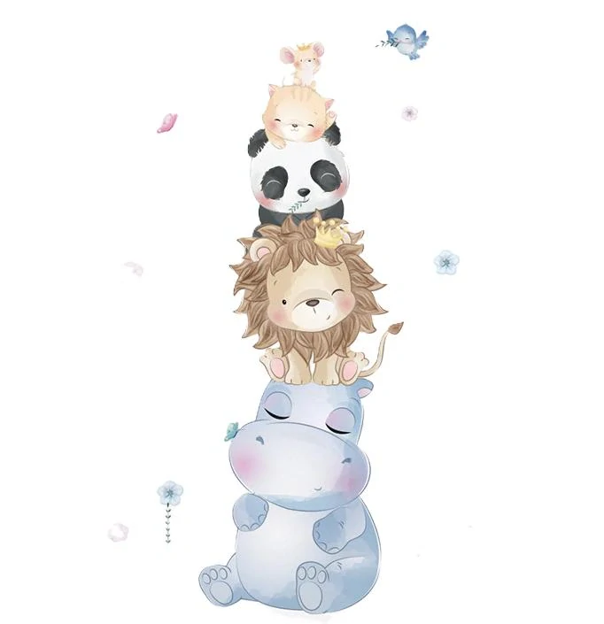 Hledáte způsob, jak originálně vyzdobit dětský pokoj? Představte si místo, kde ožívají příběhy o velkém přátelství. Naše akvarelová samolepka Zvířátka nerozluční kamarádi přináší do dětského světa víc než jen barvy – přináší pocit bezpečí a hravosti. Na zádech trpělivého hrocha se pohodlně usadila celá parta: veselý lev, hodný hrošík, spící panda, roztomilá kočička i malá myška s královskou korunkou. Tento snový motiv v jemných pastelových tónech vykouzlí v interiéru hřejivou atmosféru a stane se tichým společníkem při každodenních hrách i večerním usínání.