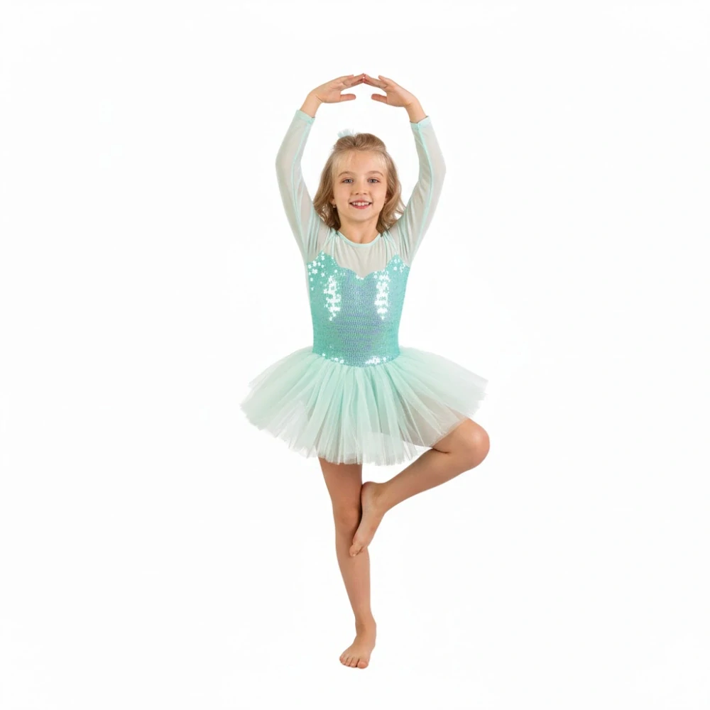 Dětský kostým Baletka a mořská víla 2v1 – mentolový se třpytkami