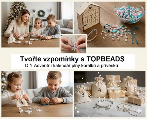 Milé maminky a tatínkové, náš typ na DIY Adventní kalendář představuje nádhernou alternativu k obvyklým kalendářům plným sladkostí. Zaměřuje se na kreativitu, jemnou motoriku a učí děti trpělivosti a smyslu pro detail. Nejenže omezíte přísun cukru, ale vytvoříte trvalou vzpomínku – náramky s přívěsky a korálky TOPBEADS, které budou nosit po celý rok.
