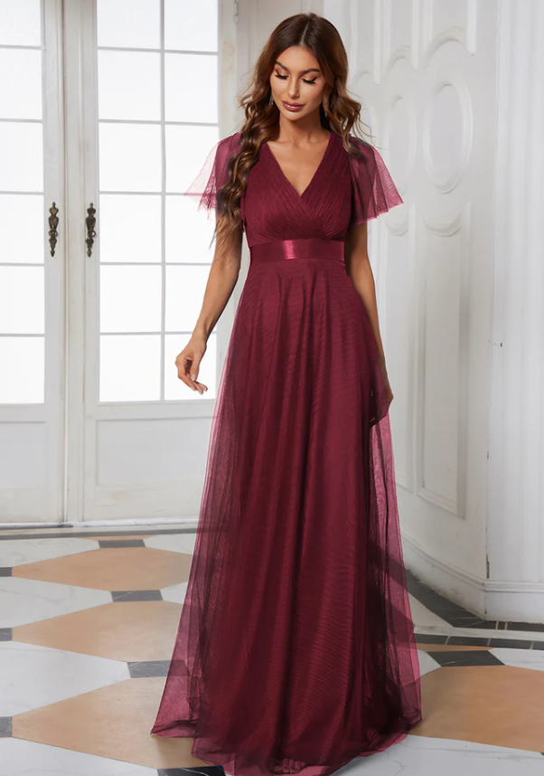 Tyto šaty chce obléci každá žena do společnoti a dospívající dívka třeba na svůj první ples či maturitní ples. Dlouhé slavnostní plesové šaty ve vínové barvě díky rafinovanému výstřihu do V dělají nádherný dekolt, navíc je zdobí jemné pavučinkové rukávky. Působivé společenské večerní plesové šaty dlouhé až na zem pro krásné ženy. Eshop Tvujdesign.cz má pro Vás velkou spoustu dokonalých dětských, dívčích i dámských šatů, spodniček a sukýnek.